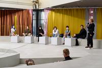 Téměř sedmihodinový diskuzní formát, který se uskutečnil ve čtvrtek 23/9/2021, byl dramaturgicky rozdělen do několika bloků tak, aby se v každém potkali zástupci a zástupkyně různorodých (nejen) ostravských scén. Hlavním motivem večera bylo totiž prolínání scén v množném čísle, jejich identifikace, vzájemné vymezení a styčné plochy. Ostravskou situaci pomohly nahlédnout osobnosti z Brna nebo Prahy.