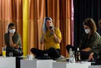 V prvním z bloků tak diskutovaly aktivistky se sociálně a ekologicky angažovanými umělkyněmi, ve druhém se potkali hosté z hudební, publicistické a umělecké scény. Třetí z diskuzních bloků patřil zástupcům a zástupkyním středních a vysokých uměleckých škol. Krátce před půlnocí se pak všech čtrnáct hostů potkalo ve společném, už neformálním panelu a do diskuze se aktivněji zapojilo i publikum.