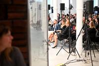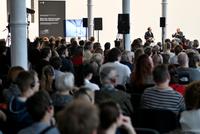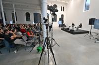 Jaké „pohyblivé“ projekty ateliéru KWK PROMES předcházely ostravským jatkám a jak tým Roberta Konieczného ke konverzi přistoupil, jsme mohli slyšet den po zpřístupnění budovy, tedy 17/5/2022. Došlo i na praktickou ukázku otevření jedné z šesti otočných stěn zrekonstruovaných jatek.