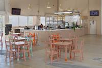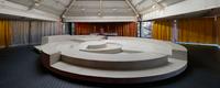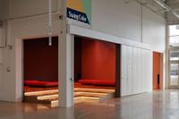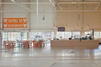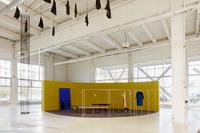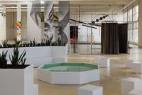 Ve velkorysém otevřeném prostoru haly se nacházely knihovna s čítárnou, bistro s navazující zastřešenou zahradou a kino, které během dne sloužilo jako relaxační zóna. Vybudovali jsme zde také rozměrné pódium/stage pro koncerty nebo divadlo a knihkupectví. Tyto části galerie, včetně recepce/infopointu, zázemí pro vzdělávací programy a šatny, budovalo PLATO po dobu jednoho roku ve spolupráci s umělci a umělkyněmi z celého světa. Nabídli jsme tak funkční zóny i umělecká díla v jednom prostoru. V interiéru PLATO byly záměrně ponechány prvky odkazující na bývalou funkci objektu, jako jsou nápisy nebo výmalba.