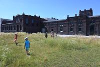 Program venku. Pátrací hra na míru rozvíjející se permakulturní zahrady kolem galerie. Děti hravou formou objevují zásady udržitelného zahradničení.