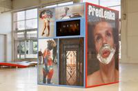 „Meshupování jsem objevila už při výstavě ve Futuře jako pro mne příznivý způsob, jak se vypořádat s vystavováním starších věcí. Vytvořené dvě skupiny objektů umožňují dávat dohromady poměrně hodně prací z období asi čtyř až pěti let. Torza (sádrové odlitky autorčina těla či těla žen z její rodiny, jež mají místo hlavy obrazovku s autorčinými videi – pozn. kurátorky) jsou zároveň vyvrcholením toho, čemu jsem se věnovala v době koronavirové epidemie. Hladila jsem sádrové odlitky mé mámy a dcery. Dokonce se mi podaří je doplnit o odlitky mé sestry a tety, takže v tom souboru bude celá ženská pokrevní větev. Nyní jim nasadím hlavu plnou svých performativních videí. Spojuji tak svou tvorbu se svou rodinou, které není můj přístup k umění blízký, a také tím vlastně ukazuji, že jsou v něm přesto přítomni a jsou jedním z jeho východisek. Objekt Magazíny oživuje moje milované téma tištěných erotických časopisů, byť si nyní z nich bere hlavně grafické členění – z tohoto typického členění se stává konstrukce, která zase ponese větší sadu videí a hlavně fotografických děl. Umístěním různých akcí vedle sebe se zde potkám sama se sebou. Konstrukce Magazínu podtrhne erotický charakter prací, i kdyby takový nebyl,“ říká Lenka Klodová.