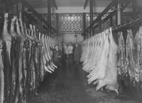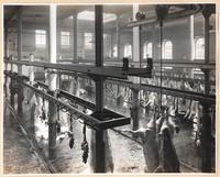 Interiér hovězí porážky, poč. 20. let 20. století. Zdroj: Statutární město Ostrava, Archiv města Ostravy