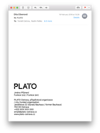 Use the form at plato-ostrava.cz/email to build standardized PLATO email signatures.