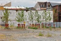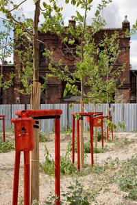 Trees as silent inhabitants predetermine the future of a space… An installation by the Partero garden studio in front of the former slaughterhouse as part of Landscape festival Ostrava.