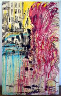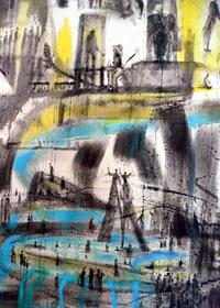 ↑Marek Pražák, The Fire Enters Sodom, 152 cm x 252 cm, anylin and acrylic on cotton, 2014, whole painting