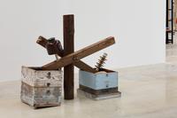 The fourth and earliest exhibited sculpture by Micol Assaël is from 2013; it is titled Preferirei di no (in English “I would prefer not to”), i.e. one of the most famous – and in recent decades also most commented by philosophers – sentences in world literature. Composed of found beams, used wooden beehives, a ceramic insulator and sand, it launches a seemingly literal play of meaning with motifs of extinguished effort, non-functionality, elapsed time and insignificance. Rather than through these anthropocentric-like references, though, I prefer to perceive the work Preferirei di no in its phenomenal givenness from which one can derive the interpretation of “Bartleby’s formula” in the sense of radically simple and nowhere-leading absence (of functions and meanings). Rather than taking into account Žižekian, Agambenian and Deleuzeian attempts to use the unexplained (and inexplicable) rejection of the protagonist of Melville’s short story, Bartleby the scrivener, the refusal to engage and participate in social rules and human communication as a model or utopian imperative of radical political behaviour, or better a symbol of a specific resistance to power, a resistance based on passivity, I find it more appropriate to approach Micol Assaël’s sculpture from an ontological perspective. For me, this work of art indeed embodies “Bartleby’s formula” in reference to the inaccessible unconditionality of our world’s affiliation with what this world, constructed by ourselves, does not contain and in which we ourselves are contained.