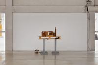 The artist named three of her recent sculptures with Japanese characters, emphasizing the “materiality” of names in our civilizational context, while the fourth and earliest one refers through its name to an enigmatic short story by Herman Melville, Bartleby, the Scrivener (1853). The English meanings of the Japanese titles of the three statues (温 On, 意 ⾒ 見見 Iken, 学名 Kumanbachi) are “warmth”, “opinion” and “bee”, respectively. They seem to provide a simple guideline assigning meaning to what we are looking at. For example, 温 On from 2018 can be interpreted, in a simplified way, as a model of a city (Rome?) in ruins. As if the city had been hit by a climate catastrophe connected to a prehistoric telephone with which no connection can be established with anyone. The sculpture-model represents a process or state in which we as people take part, but which ultimately includes us not as subjects, but as objects of its action. As individuals, we can think of it only through the capacity we have, in this case, through physically experiencing the space, seeing, observation, affects, and contemplation. But this brings us back to the question of why these three works are named in Japanese. My speculative answer is that in the intentions of the title of the Converting Words exhibition, taken from last year’s presentation at the Sprovieri Gallery in London, which contained a fourth work with the Japanese designation 日光 Nikkō (sunlight),4 these are not titles of individual works, but primarily a transposition of Japanese words and characters, their transformation or exchange for a material aggregate of meaning. This is a matter of an endless process of “conversion” from the naming into a thing and vice versa, a paradoxical attempt to establish a cycled state–process through the relationship between a word and a thing.